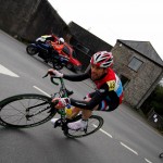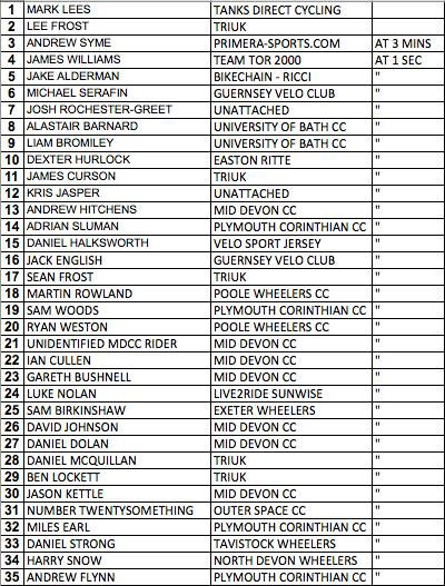 Plymouth Corinthian CC promoted its showcase event for 2015 at Modbury in the South Hams. Eighty of the regions top riders lined up at the start of the 52 mile Road Race based on 4 laps of a testing 13 mile circuit. Promoting club, Plymouth Corinthians fielded a strong outfit of nine riders hoping to win the coveted ‘Spry’ memorial trophy in memory of former club stalwarts Frank And Pearl Spry. Plymouth’s Dextor Hurlock (Easton Ritte) also lined up to defend the title he’d won twelve months earlier. The race began with Corinthians Simon Bevans attacking aggressively from the gun. Bevans though, was brought back into the fold by the eager peleton. Lee Frost (Tri UK) then launched his bid for freedom and significantly he was joined by Mark Lees (Tanks Direct) following a powerful surge on the climb to Modbury. Working well together Frost and Lees opening up a 1minute30second lead by half distance. With the peleton lacking any intent and cohesion, Corinthians’ Adrian Sluman and Sam Woods tried to inject some urgency on the 3rd lap 13 mile lap. Sluman and Woods joined forces with team mate Miles Earl to forge clear of the bunch in pursuit of the two leaders although with the headwind down the valley towards Ermington taking its toll the bunch brought the Plymouth trio to heel. Lees and Frost meanwhile had opened their lead to over two minutes and continued to work well in tandem, taking turns in the wind. A major crash in the bunch saw several riders go down which only served to help the two leaders. On the final rise to Modbury Lees proved the strongest to outsprint his breakaway rival to claim a richly deserved win. A flurry of late efforts saw the peleton split under the pressure with Andrew Syme (Primera Sports) rounding out the podium. Winners from the previous 2 events locally, James Williams (Team Tor 2000) and Jake Alderman (Bikechain Ricci) had to settle for 4th and 5th this time out while top local rider on the day was Josh Rochester-Greet who claimed 7th place. Photos courtesy of Rob Ditcher and Sam Woods