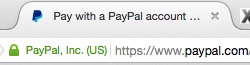 - Please ensure that when you are directed to PayPal, that you are on the genuine PayPal website and that you have a secure connection. What this looks like will vary depending on what internet web browser you are using. Here is an example of what it looks like using the Firefox browser – notice the Web URL is https://www.paypal.com and the secure padlock is enabled. i.e. you’re on the genuine PayPal website: