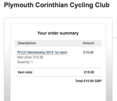 - Once on the PayPal login page, you should see that the items that you added to your basket on the PCCC website have been passed to PayPal and are ready to be paid for. e.g. here is an example of the 2015 membership that has been added the basket and here you see what it looks like on the PayPal login page: